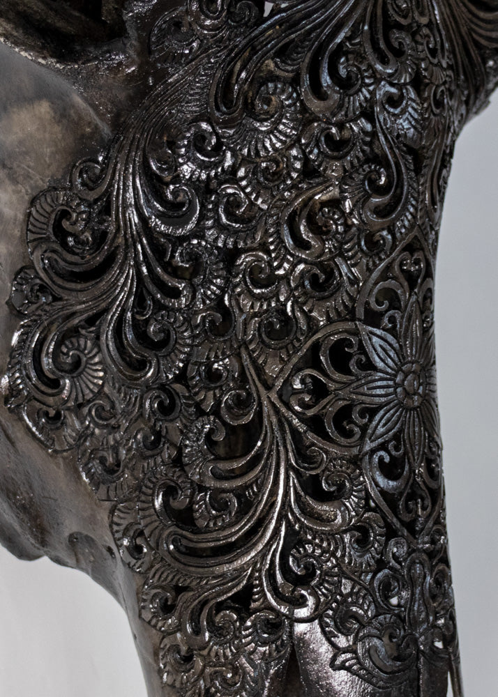The Authentic Buffalo hand-carved skull is a stunning and rare item that will surely add a touch of unique beauty to any wall collection. The skull is ethically sourced and hand-carved ,making each piece one-of-a-kind. This exquisite work of art is a true testament to the skill and craftsmanship of the artist who created it. Don't miss out on the opportunity to own such a remarkable piece.