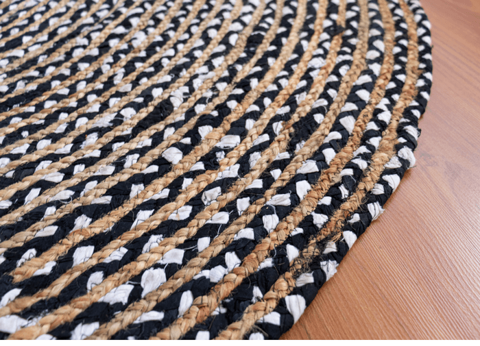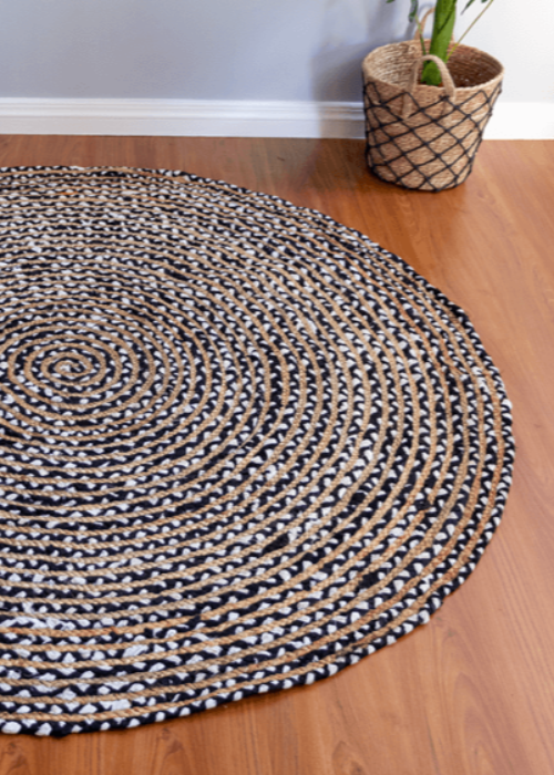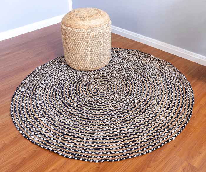 Beautifully designed using new cotton fabric. This rug is made with natural fibre jute and cotton. It is made in India and is highly durable. It comes with a hard weave pile. It is handmade by skilled artisans in India. It is easy to clean and is long-lasting.