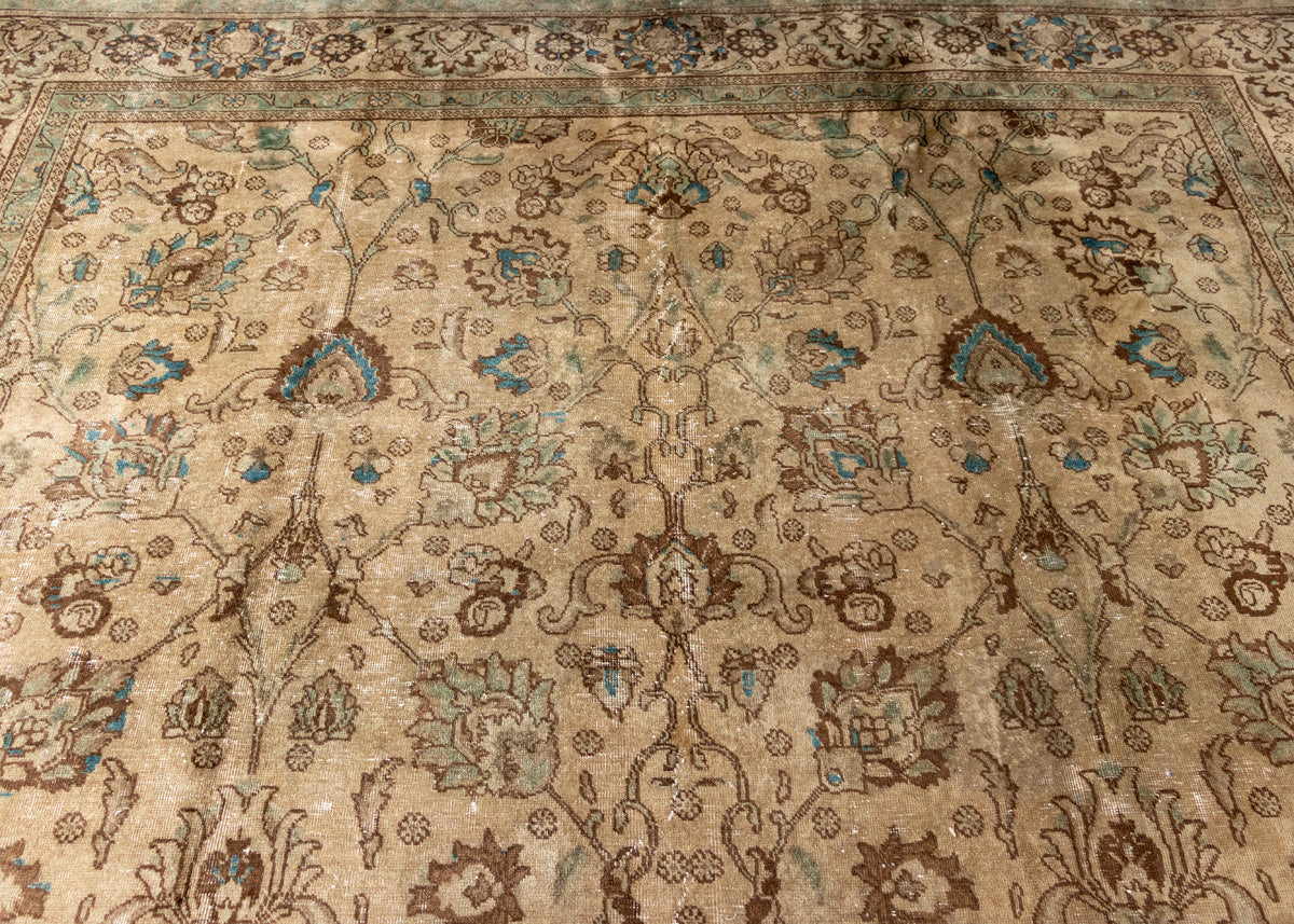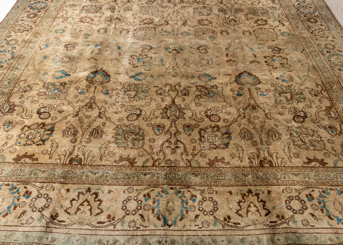 Antique vintage Azarshahr rug Over 70 years old, Truly masterpiece rug. This Tabriz rug is one of the kind. A Tabriz rug/carpet is one of the most famous categories of Persian carpets. This came from the city of Tabriz, the capital city of East Azarbaijan Province in the northwest of Iran. It is one of the oldest rug weaving centres in Iran that produce the most valuable and famous rugs in the world.