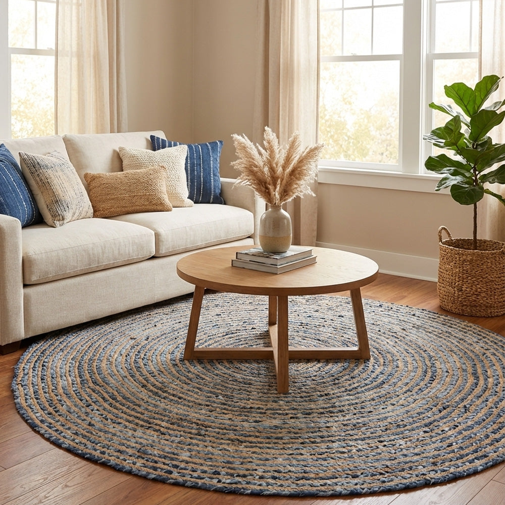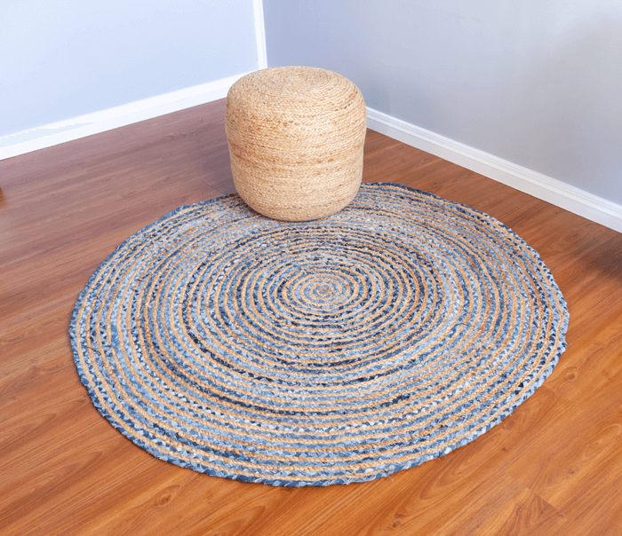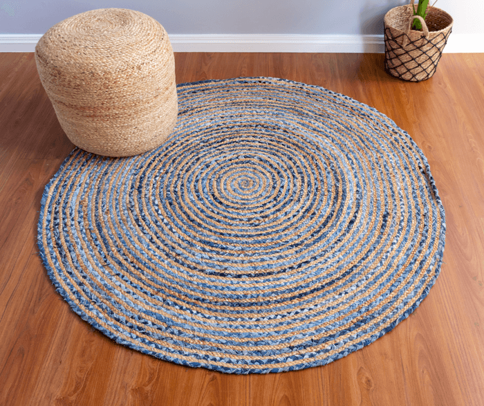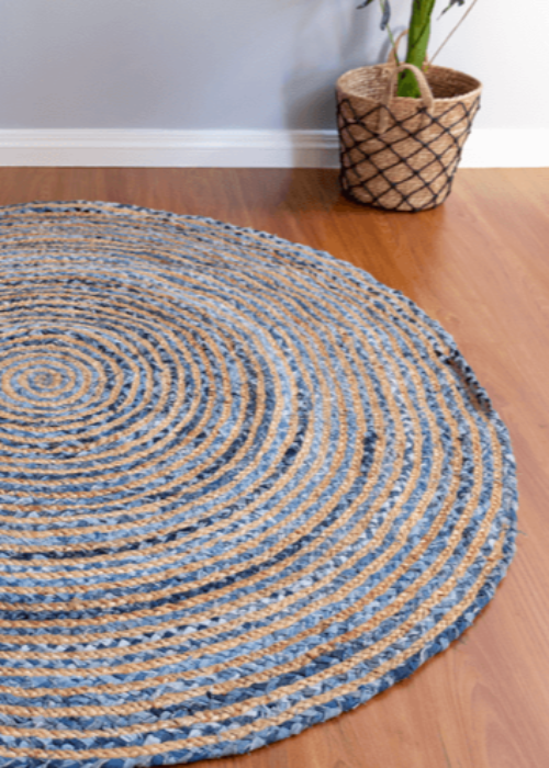 Beautifully designed using new denim fabric. This rug is made with natural fibre jute and cotton. It is made in India and is highly durable. It comes with a hard weave pile. It is handmade by skilled artisans in India. It is easy to clean and is long-lasting.