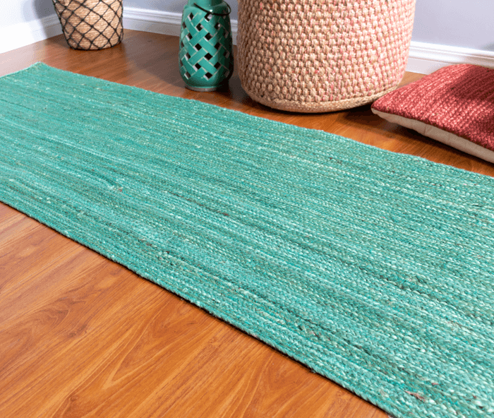 Green jute runner rug is perfect for kids room to add some bright colors. This rug is made with 100 % natural fibre jute. It offers an eco-friendly look and feel and can blend finely with your living space. It is made in India. It comes with a hard weave pile. You can clean it easily.