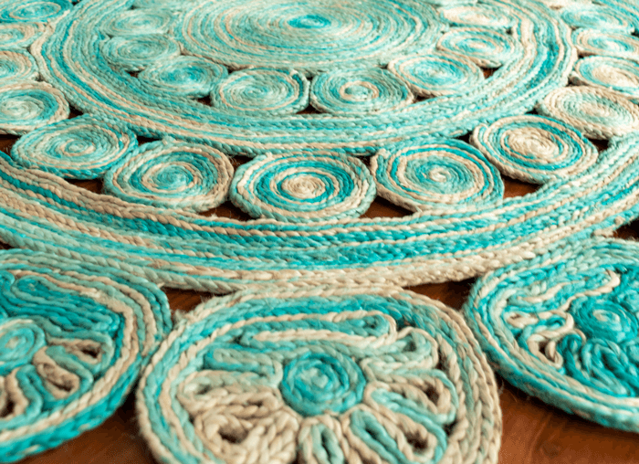 It is a hand-knotted rug made from 100 % natural fibre by remote village women weavers. The material used is Pure Natural Braided Jute which is easy to clean. It is vertically weaved and It is a hard pile rug which is highly durable.