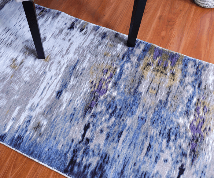 This machine-made/power-loomed rug will surely add some style to your living room. It is made of polyester and vegetable-dyed colours are used. It is a heat-set printed rug so the colour never fades and is super soft. This is a good quality affordable rug.