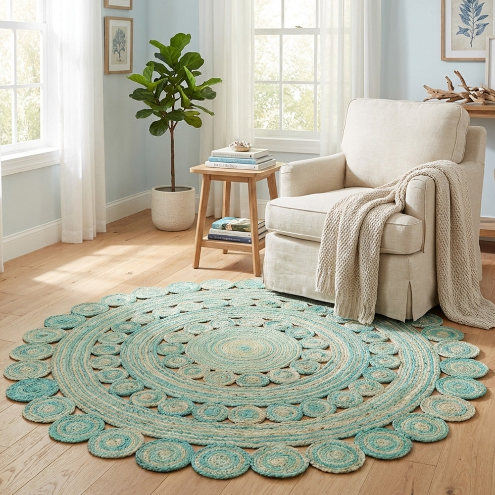 Designer plain natural round rug, this rug is made with 100 % natural fibre jute. It is a perfect choice for those who believe in simplicity. It is made in India and is highly durable. It comes with a hard weave pile. It is handmade by skilled artisans in India. It is easy to clean and is long-lasting.