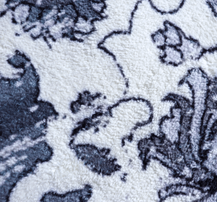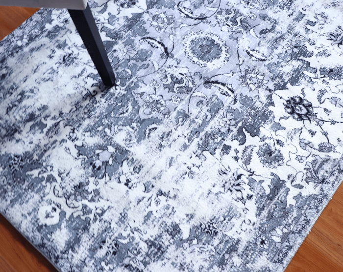 This machine-made/power-loomed rug will surely add some style to your living room. It is made of polyester and vegetable-dyed colours are used. It is a heat-set printed rug so the colour never fades and is super soft. This is a good quality affordable rug.