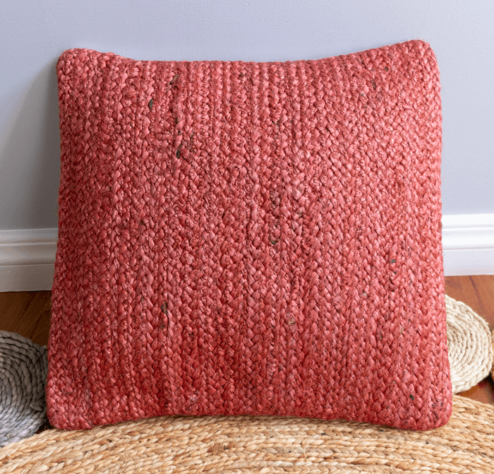 This jute cushion cover is made with natural fibre and dyed using natural colours. It is handmade/hand-loomed and the size is 45 x 45 CM with cotton zip backing. It includes a cushion filler with it. It is of the finest quality.