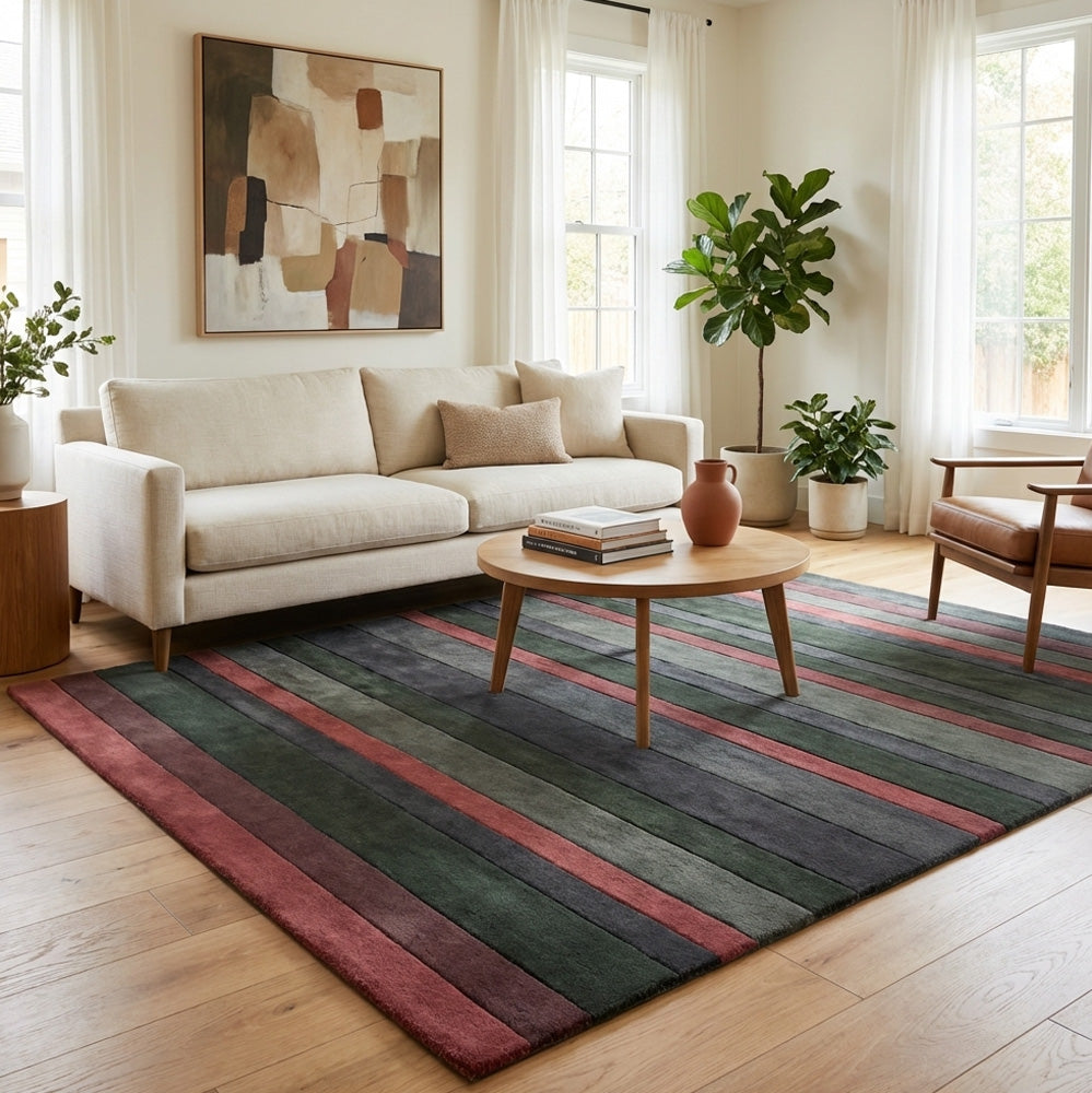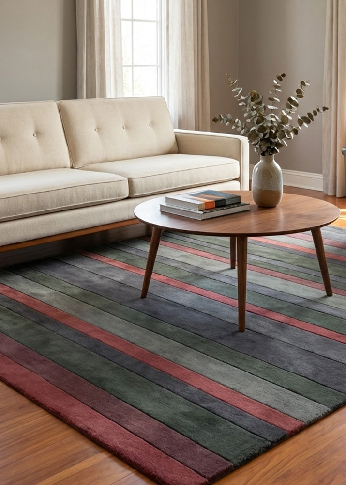 The elegant yet straightforward layers of colors make this wool rug a perfect addition to any modern home decor. The eye-catching linear hand-carved design and cheerful colours make this rug an ideal centre of attraction. Stripe series rug proudly designed in New Zealand.