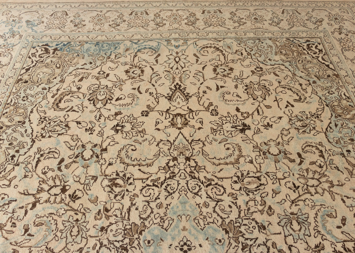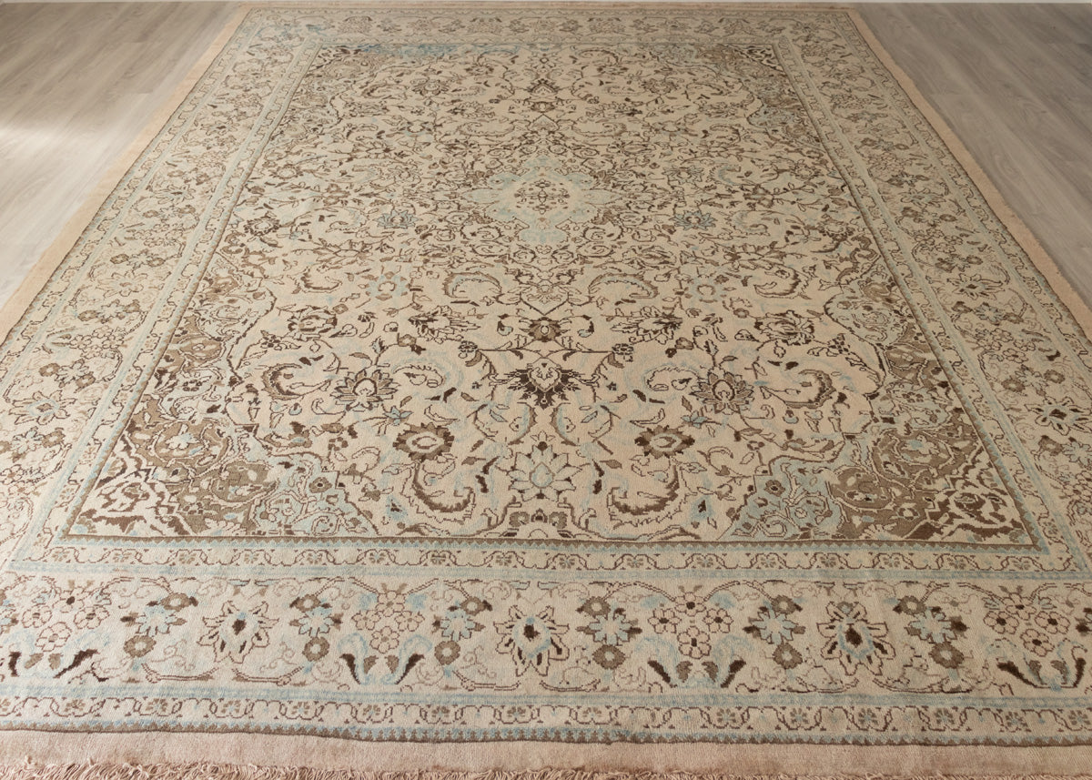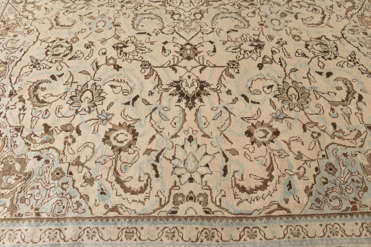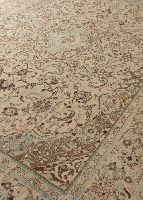 This beautiful antique stunning arak rug in blue colour is super hard to find it and it is a very fine quality rug. Arak rugs originated in Arak city which was also known as Sultanabad in north-central Iran. This city is also known for pottery and metalworks apart from hand-knotted rugs. These rugs are particularly featured in floral designs with medallion patterns in the middle. These rugs are usually weaved in asymmetrical knots.