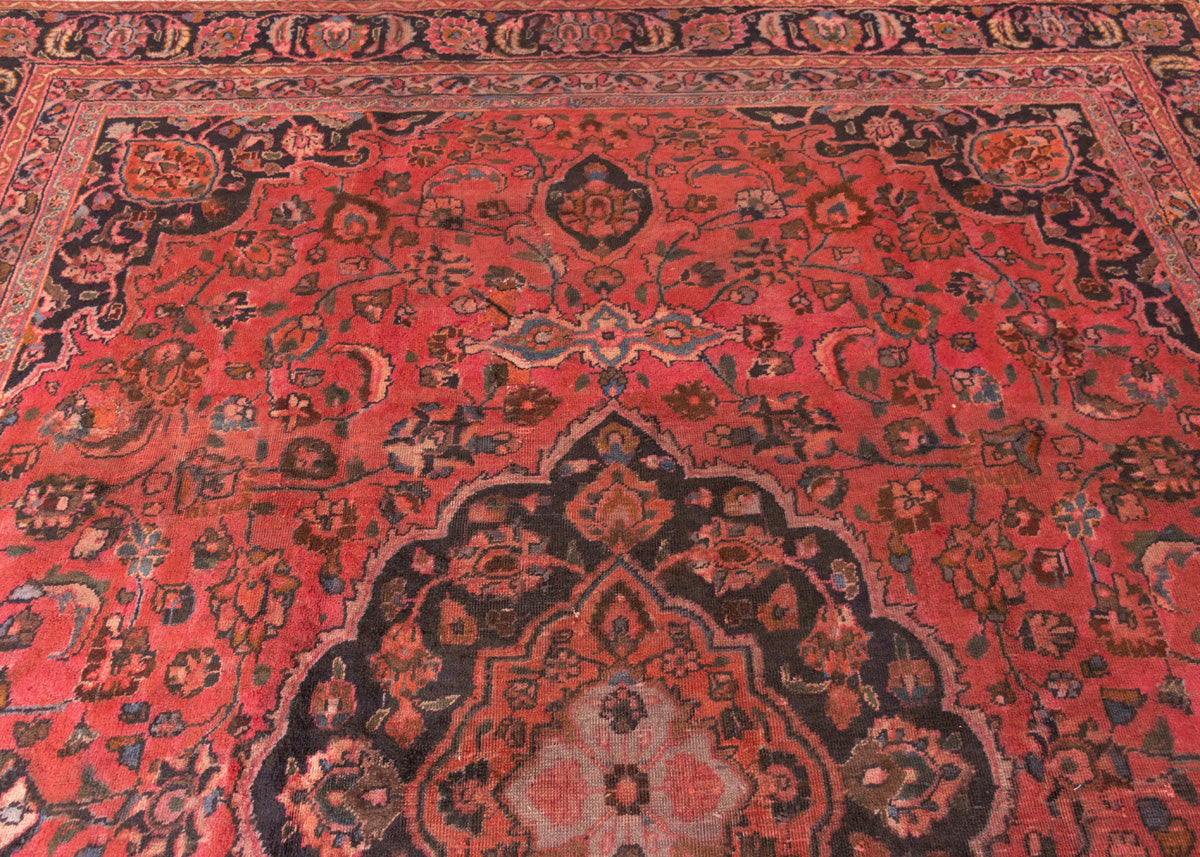 Azghand rugs are made by tribal weavers who live in Khorasan tribes. They made carpets used by Persian knots. They use colours, element designs and patterns on broader according to weaving area and locations of carpets. Most of the time these rugs have floral medallion in the middle traditional designs with the red burgundy base colour.