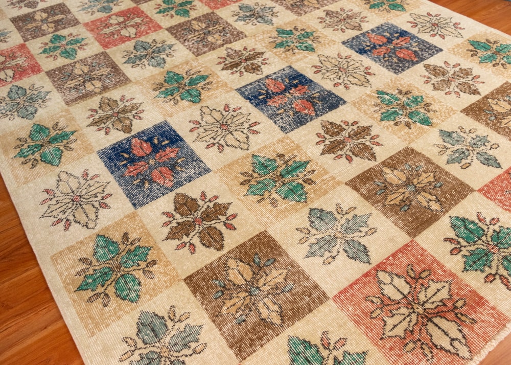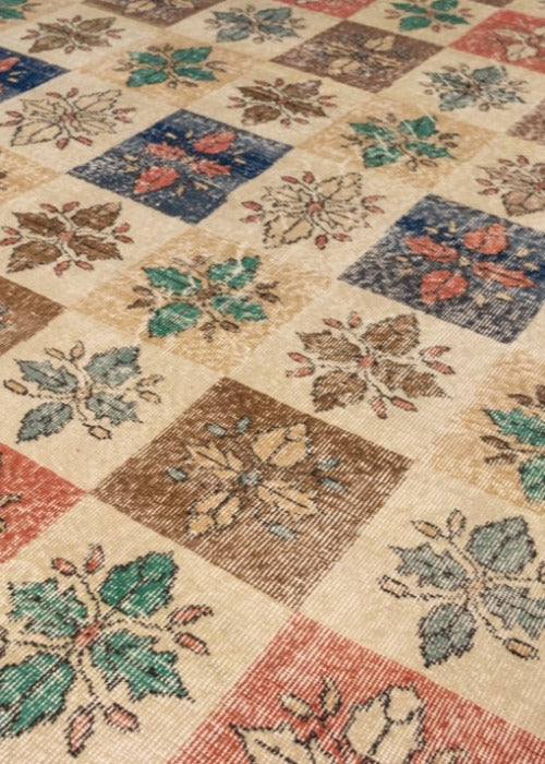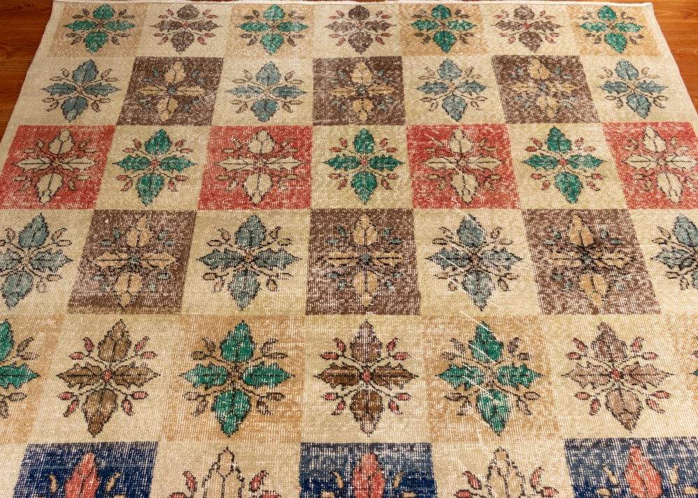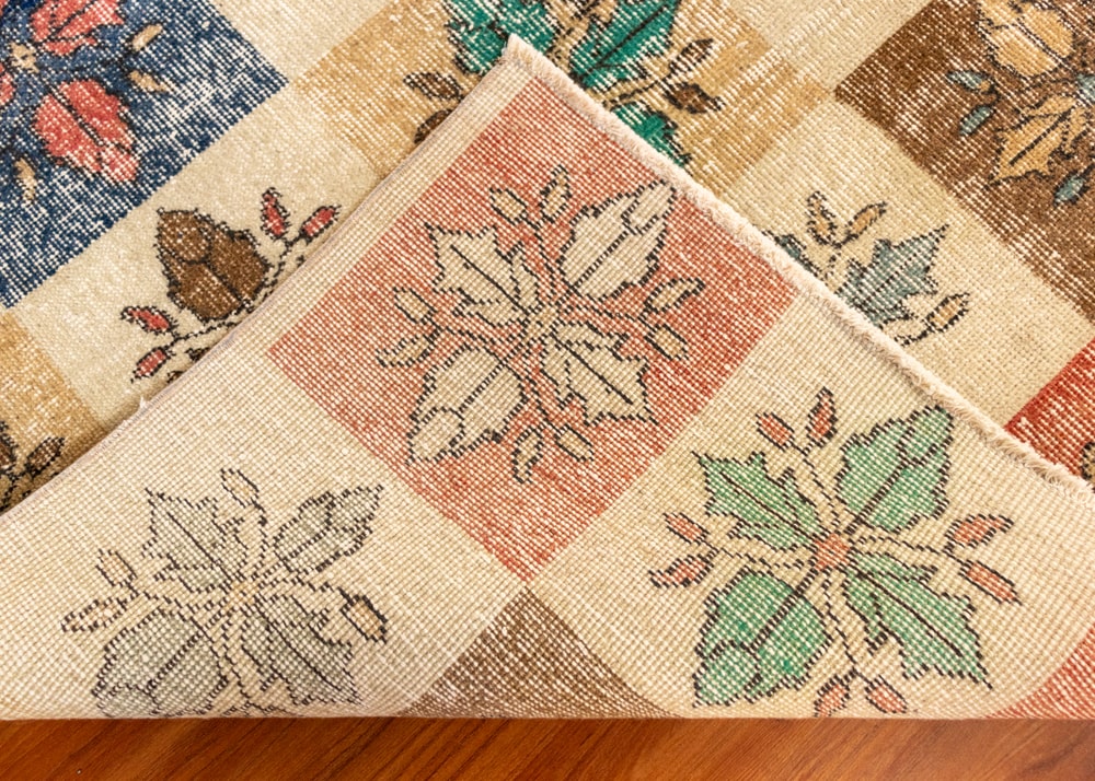 This beautiful vintage Turkish rug was expertly crafted with natural organic wool, with an intricate hand-knotted weave, for a one-of-a-kind design. Dating from the 1970s, this unique piece will add character and history to any living space.