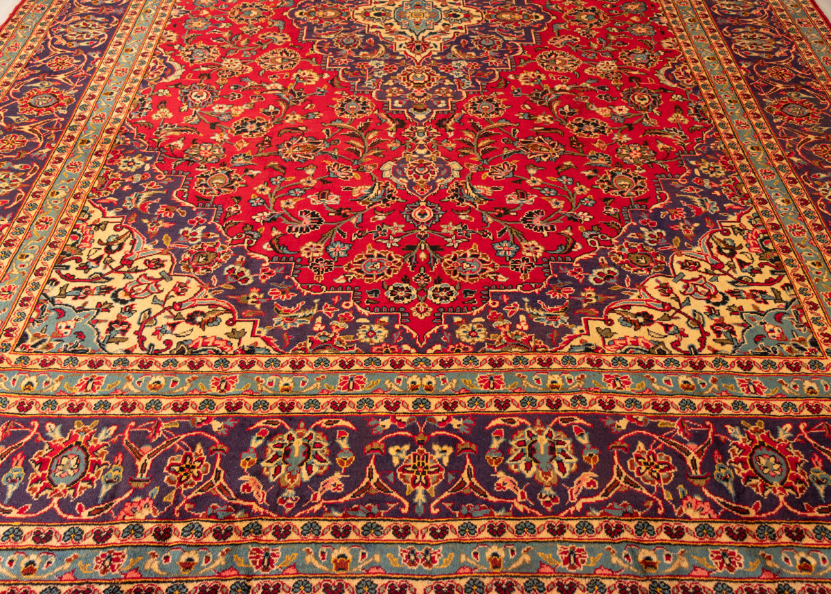 Kashan rugs are originated from Kashan an oasis town along the Kavir desert in central Iran. It is the oldest and one the best carpet producer city in Iran. Kashan carpets are extremely fine quality and dense knots rugs which are famous all over the world. Kashan Carpets are mainly in a red medallion with a blue colour combination. These designs usually use flowers, leaf and other motifs.
