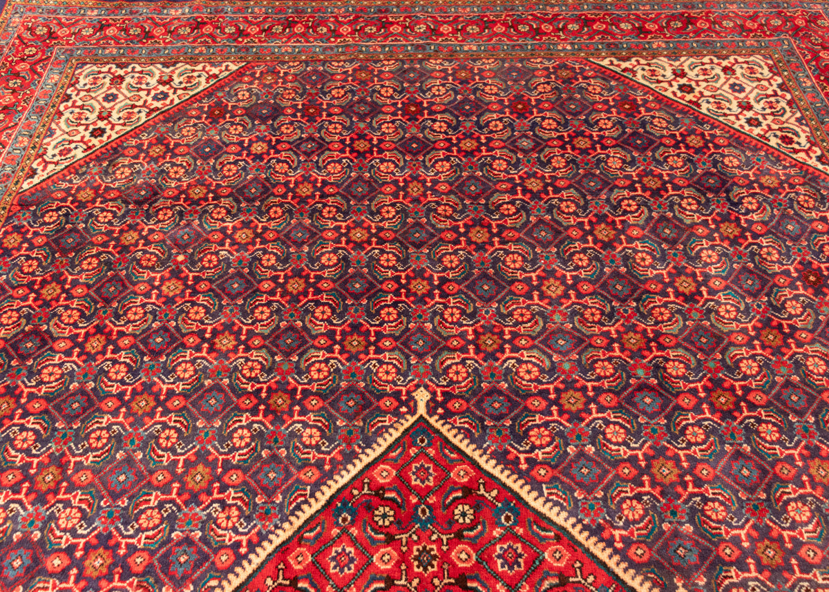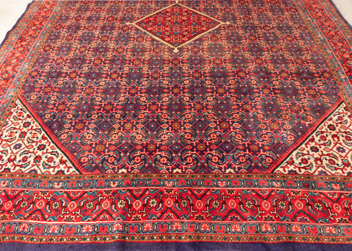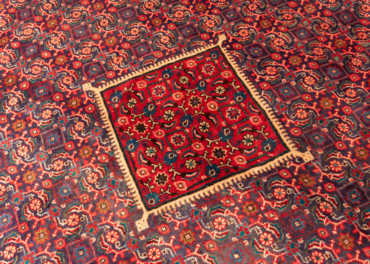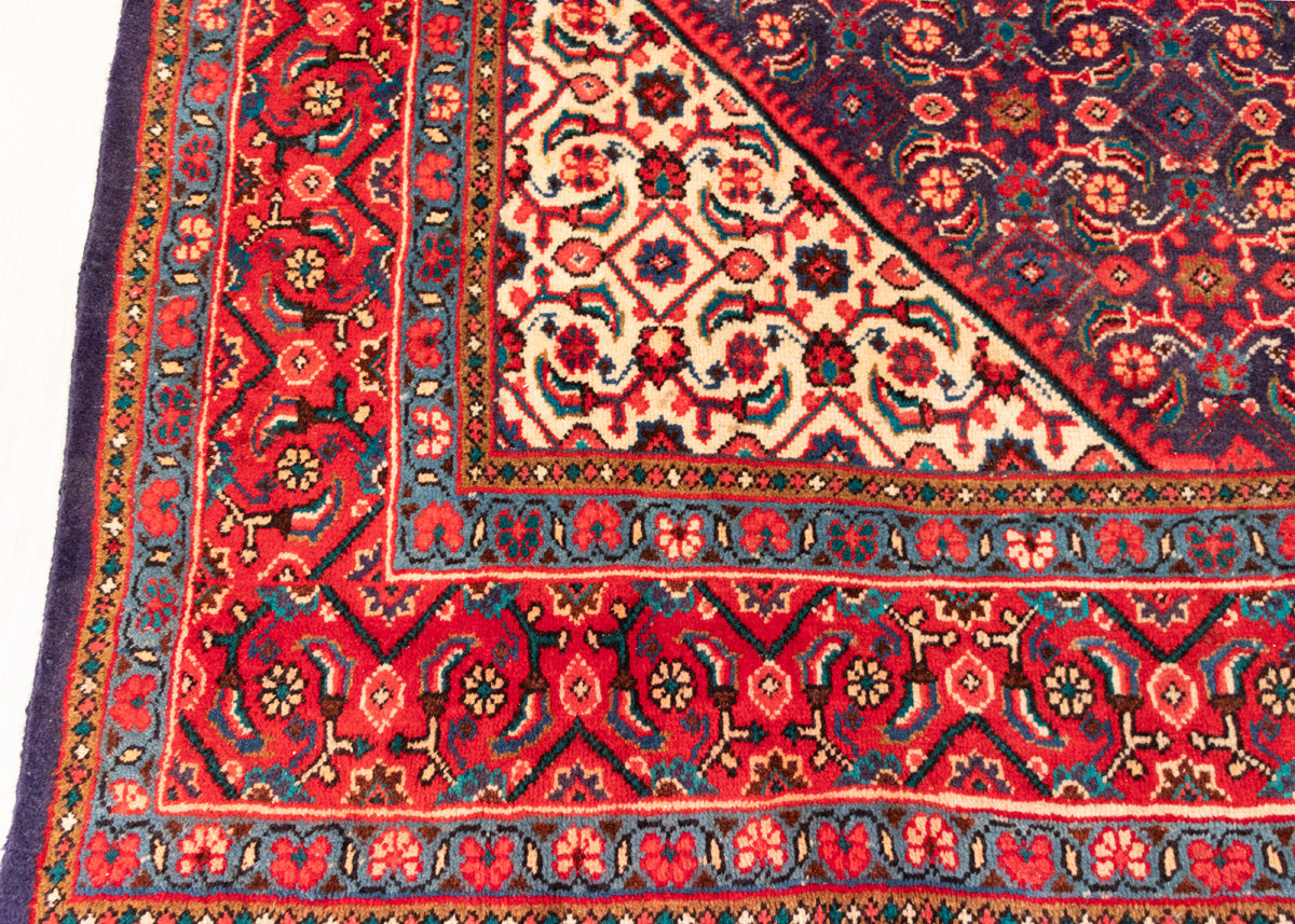 A Mahal rug from central Iran. Stunning blues. Great craft with rare colours. Mahal rugs originated from the Mahallat region of Iran. Mahallat is one of the home rug cities and towns like mahal, sarouq and sultanabad (Arak). These rugs are usually used by interior designers due to the pattern style and the colours.