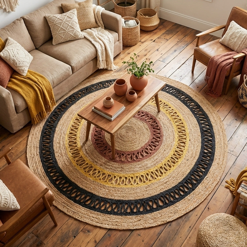 Simple and sober, this rug is made with 100 % natural fibre jute. It is a perfect choice for those who believe in simplicity. It is made in India and is highly durable. It comes with a hard weave pile. It is handmade by skilled artisans in India. It is easy to clean and is long-lasting.